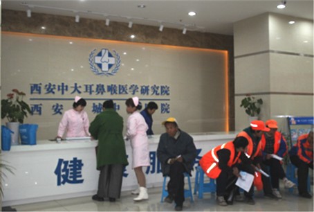 一大早,西安新城中大耳鼻喉医院就挤满了前来接受免费健康体检的环卫工人。平日里,马路边、阳光下、风雨中,是环卫工人们坚守的工作岗位。环卫工人工作环境差,工作时间长,长期与粉尘、垃圾等有害物质作斗争。他们用一把扫帚扫出了城市的文明,用一个簸箕端出了城市的整洁,用辛勤的汗水美化了城市的环境。虽然他们工作在城市,但不少环卫工人却寄居在城市的角落,享受不到也消费不起卫生医疗服务,不少人因为不了解自己的身体状况,不懂得保健,发现病情太晚,错过了较好治疗时机,成为家人朋友心中永远的痛。