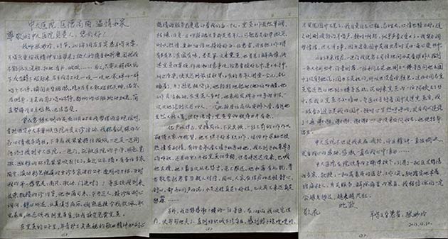 2014年伊始,医院收到了一份特别的新年礼物——一封来自患者的感谢信。患者张女士,受耳鸣头晕困扰多时。11月25日,张女士在《西安晚报》上看到中大医院的义诊活动,于是她抱着试探的忐忑心情乘车来到了西安新城中大耳鼻喉医院。在这里,她遇到了权威和蔼的老医生,顺利的完成了诊治;熏蒸治疗期间,她认识了一个普通的小护士,她的温暖贴心让张女士和整个熏蒸室的患者都深深感动;而一个意外的小插曲,更让她看到了导医的无微不至。这一段短暂的治病经历,不仅让张女士减轻了病痛,收获了健康,更收获了一份感动,成为了她人生中一段愉悦美好的回忆。于是,她怀着激动的心情,写下了这封感谢信,不吝赞美她亲身接触过的每一个医护工作者,真诚地表达了她的谢意。
