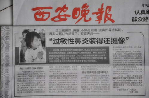 (摘自【西安晚报】 记者王凡报道)近日,出游踏青的市民越来越多,患上过敏性结膜炎、鼻炎的几率也大大增加。记者从西安新城中大耳鼻喉医院了解到,近日到医院就诊的过敏性鼻炎明显增多。而且,有些患者错把鼻炎当感冒,耽误了治疗。医生表示,清明过后还将迎来花粉过敏的高发期,建议有过敏性鼻炎史的市民初春出游更要做好预防措施。