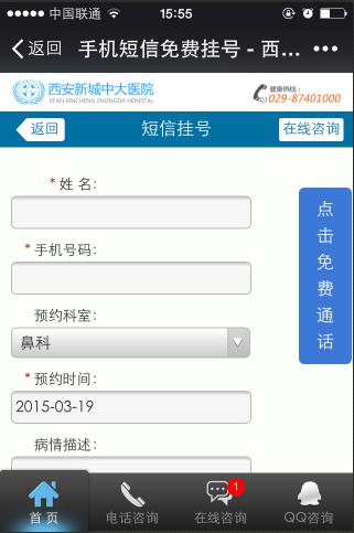 西安新城中大耳鼻喉医院启用微信在线支付是一次创新和推进的举措,更是医院实现医疗服务智能化的智慧通道。市民不仅可以了解医院预约挂号信息,而且还可以通过微信预约挂号,实现“随时随地触手可及”的预约挂号服务,这也解决了看病“三长一短”(挂号排队时间长、看病等待时间长、结算排队时间长、医生看病时间短)的问题。医院相关负责人表示:微信公众服务号将努力打造“口袋里的医院”,成为广大市民就医的健康快速通道。