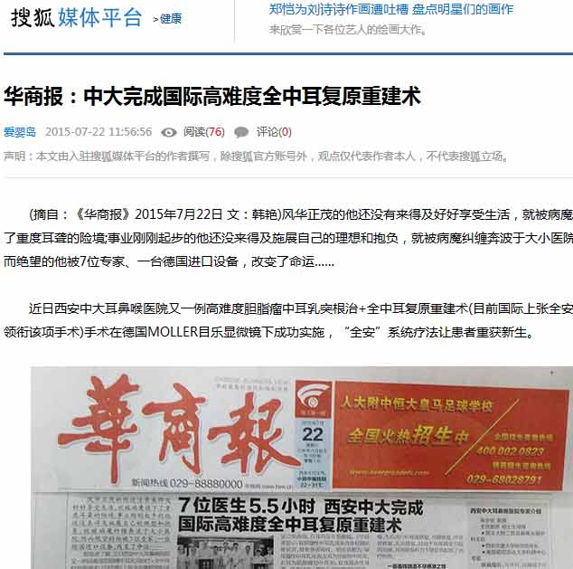 (摘自:《华商报》2015年7月22日 文:韩艳)风华正茂的他还没有来得及好好享受生活,就被病魔推下了重度耳聋的险境;事业刚刚起步的他还没来得及施展自己的理想和抱负,就被病魔纠缠奔波于大小医院;然而绝望的他被7位医生、一台进口设备,改变了命运……