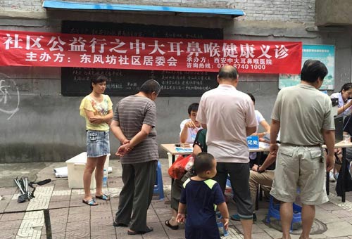 为提高社区广大群众对健康的认识,解答社区居民耳鼻喉方面的疾病疑惑,切实解决居民看病就医的实际问题。近日,西安新城中大耳鼻喉医院接到西安市新城区东元西路社区居委会、昌仁里社区居委会、东风坊社区居委会的邀请,接连在各社区举行了“社区公益行之中大耳鼻喉健康义诊”活动。