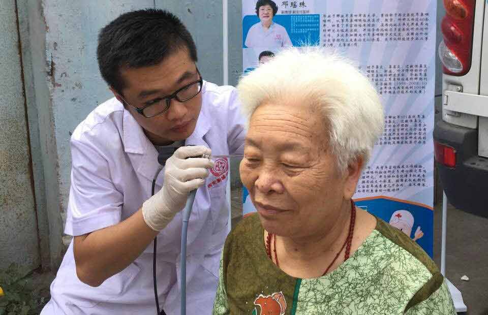 张大妈接受耳内窥镜检查