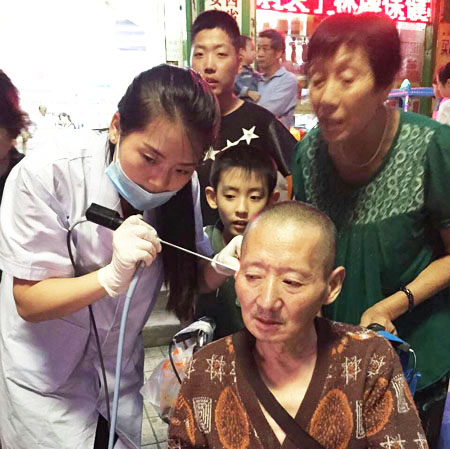 北洞岗小区张大爷正在接受耳内窥镜检查