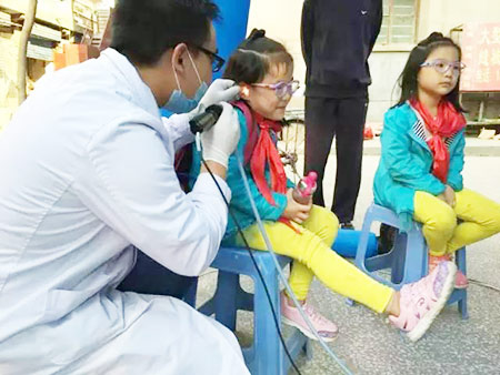 在龙首村小学上二年级的小佳和小乐,趁中午,家长带来做了鼻部和耳部检查,一开始他们看到检查仪器的时候显得有些害怕,在医护人员的安扶下了解这种检查并不会疼痛,便接受了并顺利的完成了检查。家长告诉我们的医护人员:“知道耳鼻咽喉疾病对孩子的身体和学习影响都比较大,今天有这个机会,给孩子检查一下,没什么毛病就放心了。”