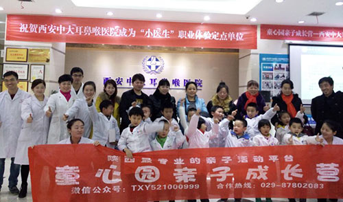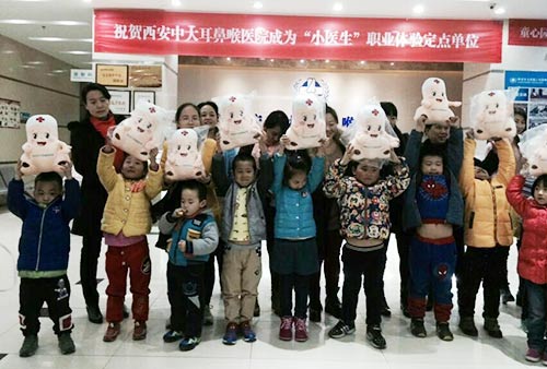 为了让孩子了解到简单的耳鼻喉健康知识,学会关爱自身和父母的健康,12月5日,作为“小医生”职业体验定点单位,西安新城中大耳鼻喉医院协同童心园亲子体验营,合力举办了一场别开生面的耳鼻喉小医生体验活动。