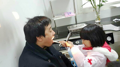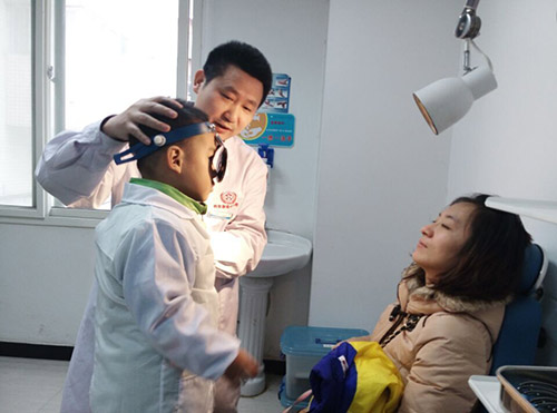 讲课结束后,所有儿童每5人分成一组,由西安新城中大耳鼻喉医院医护人员带领,分别进入各科室进行“小小医生”职业体验,各个诊室医助一对一教导小医生使用额镜、压舌板帮父母检查,让小朋友们过足医生瘾。