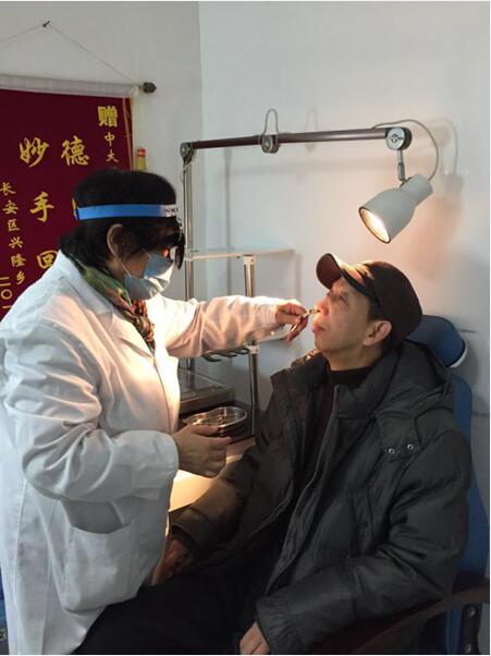 医生正为司机朋友做鼻腔检查