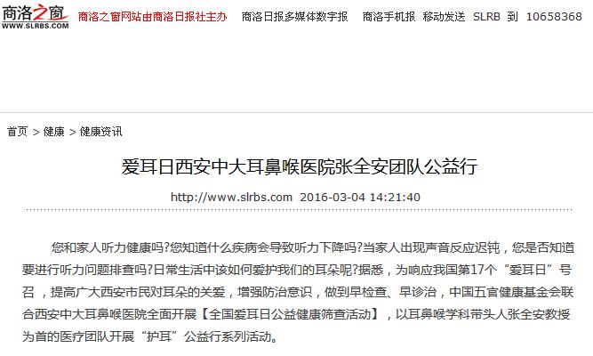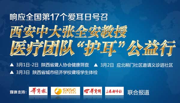 您和家人听力健康吗?您知道什么疾病会导致听力下降吗?当家人出现声音反应迟钝,您是否知道要进行听力问题排查吗?日常生活中该如何爱护我们的耳朵呢?据悉,为响应我国第17个“爱耳日”号召 ,提高广大西安市民对耳朵的关爱,增强防治意识,做到早检查、早诊治,中国五官健康基金会联合西安新城中大耳鼻喉医院全面开展【全国爱耳日公益健康筛查活动】,以耳鼻喉学科带头人张全安教授为首的医疗团队开展“护耳”公益行系列活动。