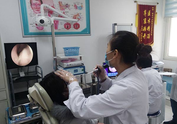 唐三彩美妆员工正在进行耳鼻喉内窥镜检查
