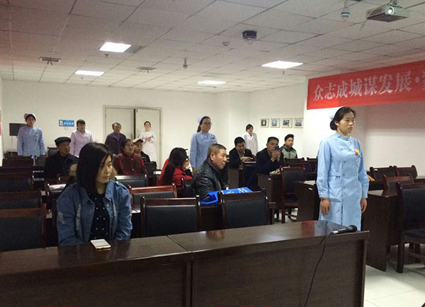 住院患者在医护人员的引导下就坐听课,认真听取养生操的原理、优势,和动作要领,随后又参照护士长在前的示范动作,兴致勃勃、一板一眼的做起操来。认真就是学的快,不一会儿,在场患者就已经基本学会了这套简单又实用的“养生操”。
