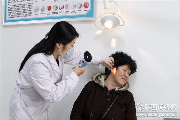 3月2日,医生正忙着在给居民做身体检查。在全国第17个“爱耳日”期间,陕西省聋人协会联合西安新城中大耳鼻喉医院,免费为居民和残障人士做身体检查,同时义诊到社区,方便居民和残障人士了解自己的健康状况,为健康保驾护航。实习生 柯希飞摄